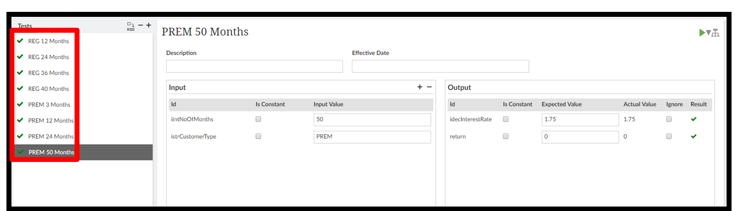 When you have completed the decision table, you should test it to ensure it behaves as you expect.