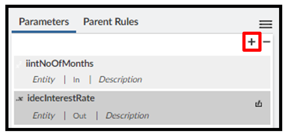 Step 1. In the Parameters panel, click the + icon to add a parameter.