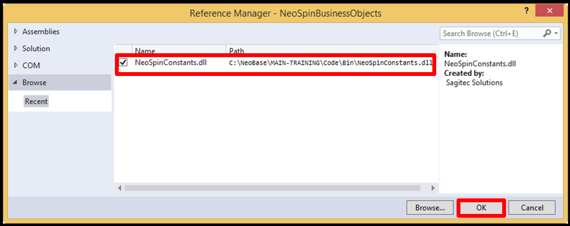 Select NeoSpinConstants.dll and click Add. Select it in the Reference Manager and click OK.