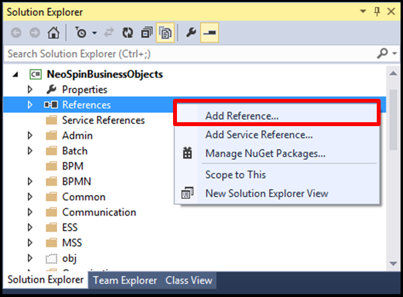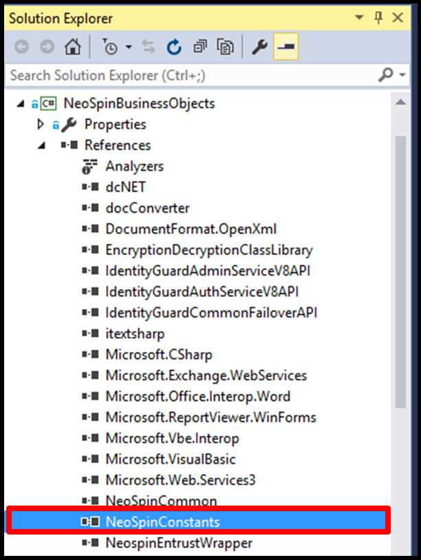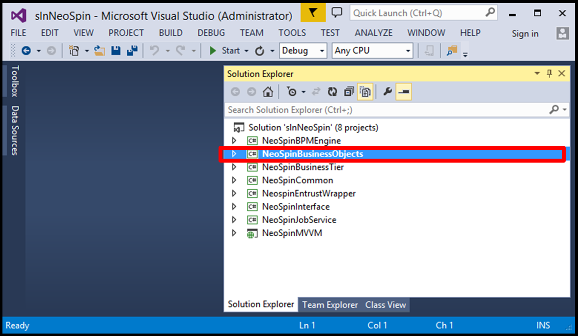 Step 2. In Visual Studio, open the NeoSpinBusinessObjects project.