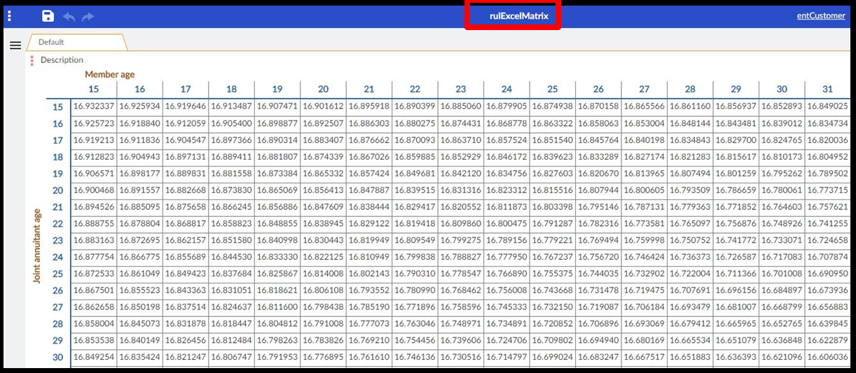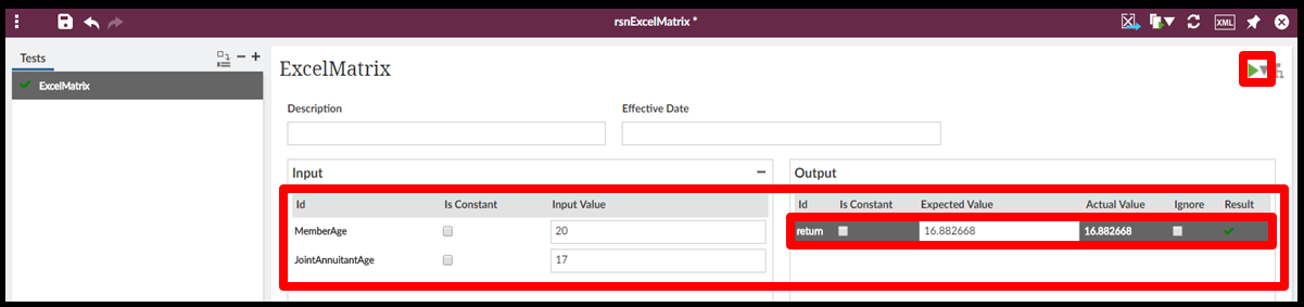 An Excel matrix allows you to import data organized as one X and one Y axis to create logic that can return hundreds of results, like a very large decision table. Once imported, you should test it exactly as you would test a decision table to ensure it returns the values you expect it to.