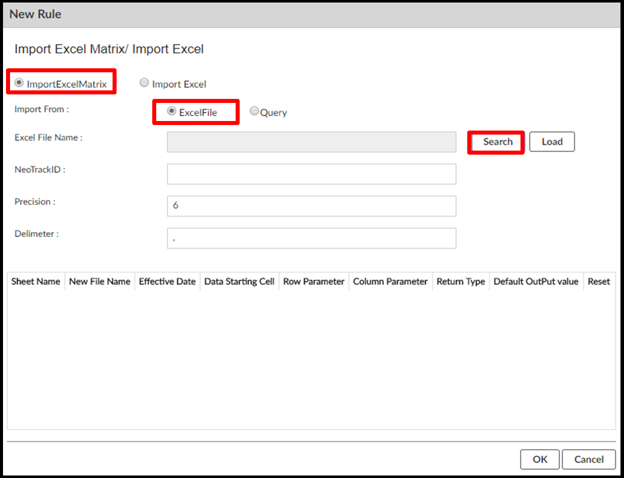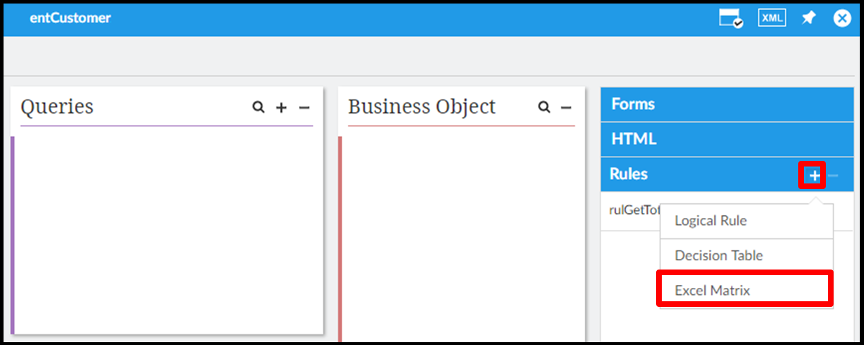 Click the + icon and select the rule type. This example creates an Excel Matrix.