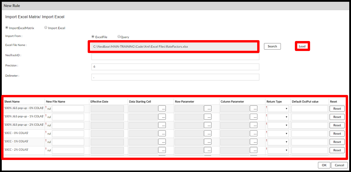 This example uses the default precision and delimiter settings. Click the Load button to view details for all the sheets in the file.