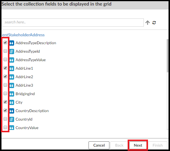 Select the collection that contains the values you want in the grid and click the Grid control type. This starts a wizard for configuring the grid.