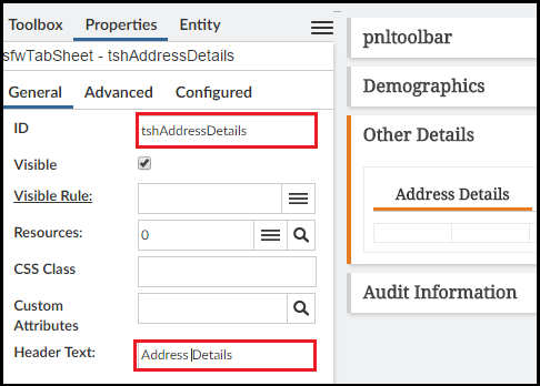 Just like a panel, you have to give a tab a meaningful ID. The text the user sees on a tab is called the Header Text.