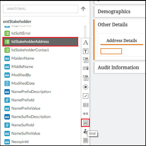 A maintenance form is based on one form object, and the columns in that object’s table can be easily added and configured from the entity attributes. For ease of navigation, it’s often necessary to add columns from the entity’s child table or tables so the user can view or edit those values, or use them to navigate elsewhere without having to perform a search.