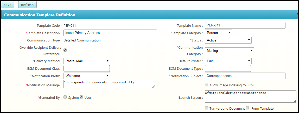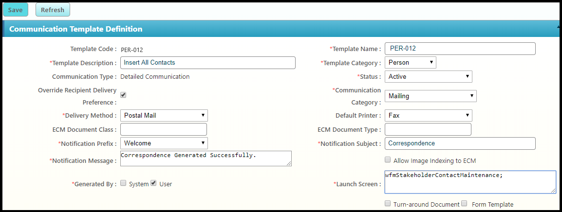 Step 1. In the application, navigate to the Communication Template Lookup screen.