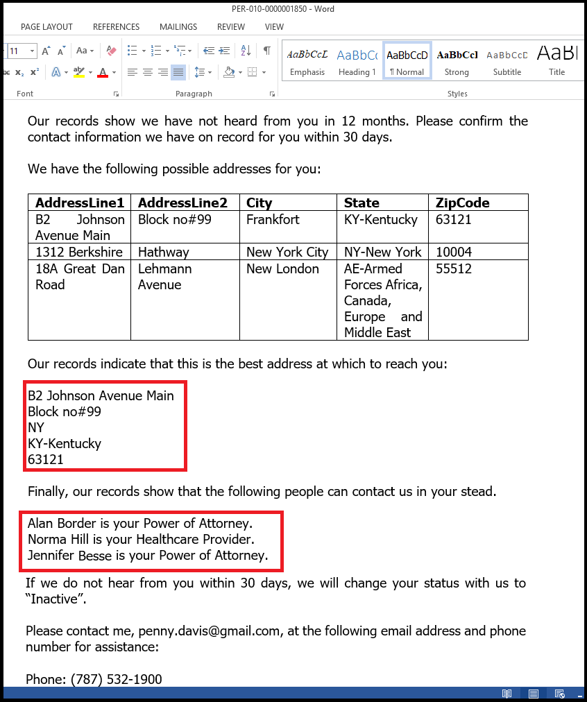 Now when the user generates the parent correspondence, it will insert the child templates to generate the recipient's primary address and contacts.